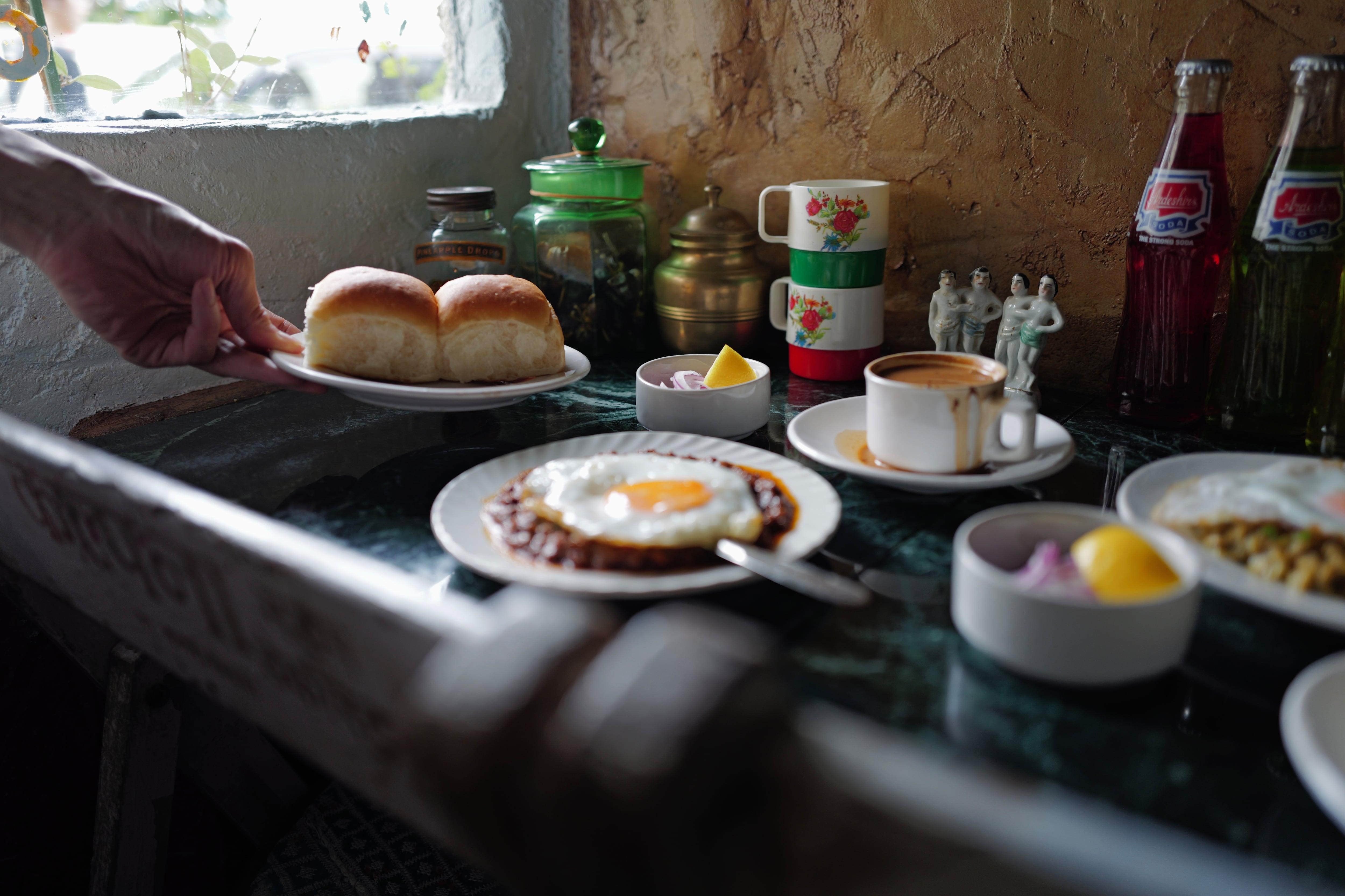 まず、イラニチャイを一口味見し、スライスした半分〜1枚のパウをチャイに少し浸して食べる。(これで朝からキーマを食べる準備が整う)